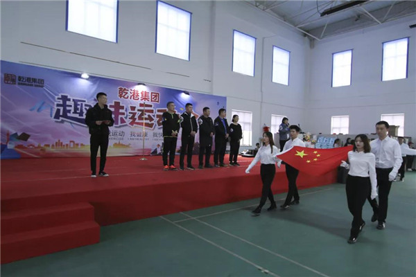 集團總部全體員工及工廠員工共組成六支方隊,國旗方隊、司旗方隊、以及各方隊旗,整體步伐一致,昂首挺胸,伴隨著國歌聲向主席臺邁進并致敬,展示了乾港人團結(jié)奮進,真誠務(wù)實的精神風貌。
