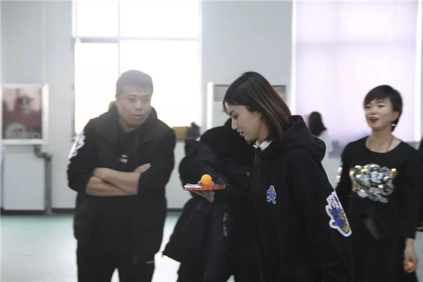 在比賽中隊友們相互鼓勵,相互配合。乒乓球接力不僅考驗隊員的速度、耐心,更考驗著隊員們團結(jié)協(xié)作的能力,以及彼此的默契程度?,F(xiàn)場游戲活動中,比賽氣氛和諧快樂,大家都被簡單的互動游戲所感染,一陣陣吶喊助威聲從運動場上傳來。
